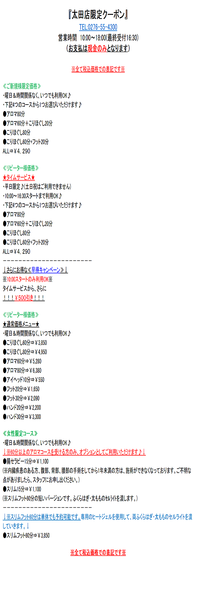 60分で、うつ伏せ~仰向けの指の先まで全身ほぐせますので身体がだるい方、リラックスしたい方、ぜひリラステのアロマコースをお試しください。